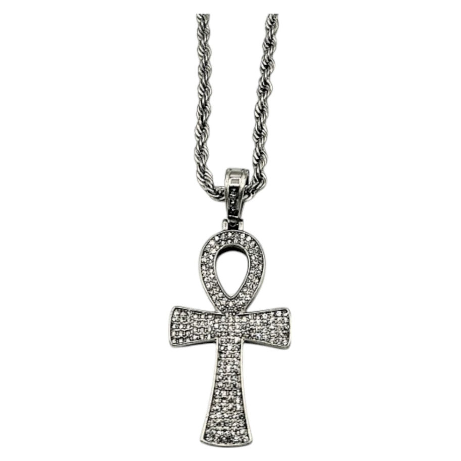 Make a bold statement with this Crystal Ankh Necklace, a symbol of life and energy. Featuring a shimmering crystal-studded ankh pendant and a sleek chain, this piece adds a touch of elegance and meaning to any outfit—perfect for everyday wear or special occasions.